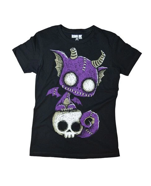 The Akumu Ink small coffin shaped logo is printed on the back near the neck like a signature on every shirt. Available in a women’s black 100% cotton t-shirt. Wash inside out in cold water and hang to dry. Model is wearing a size Medium. Each shirt is hand printed in Southern California.