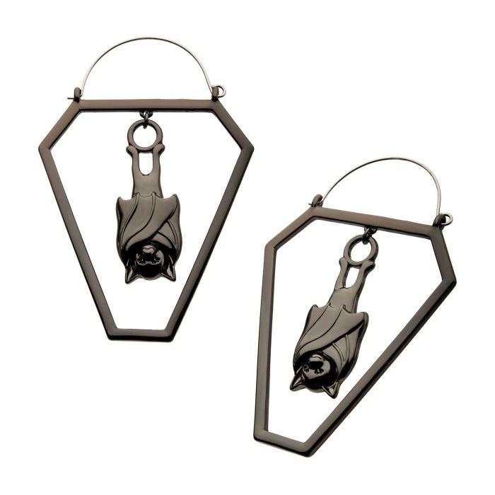 20g Black Plated Cut Out Bat in Coffin Plug Hoops