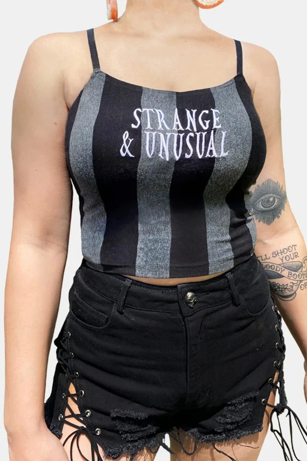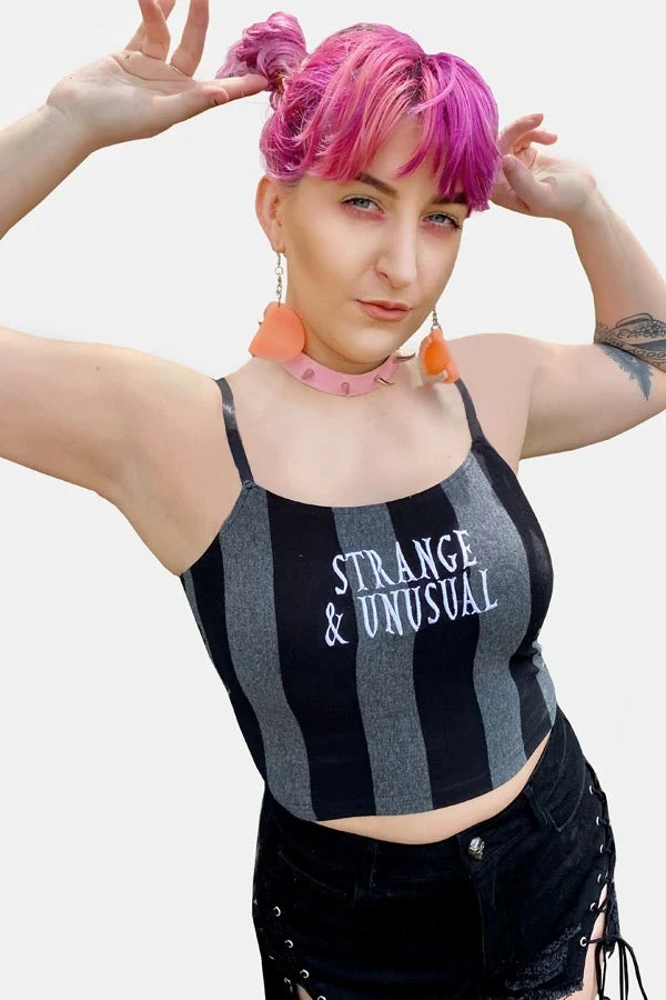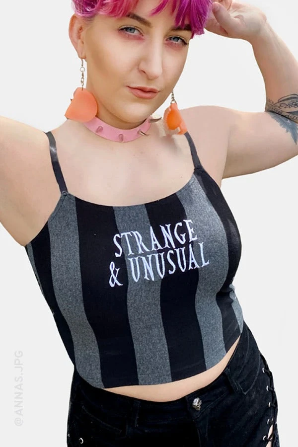 Spooky all year is our vibe. The Strange & Unusual top features fully adjustable straps and a soft stretch fabric that you will love.