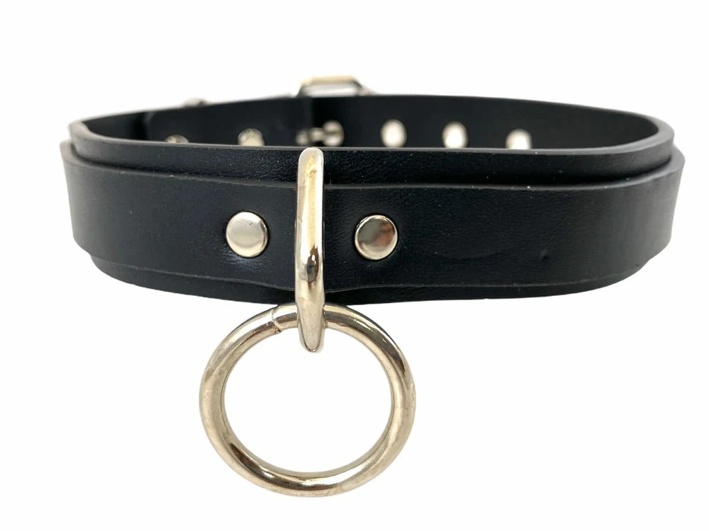 1 1/8″ Black vegan leather choker with one 1 1/4″ loop & ring