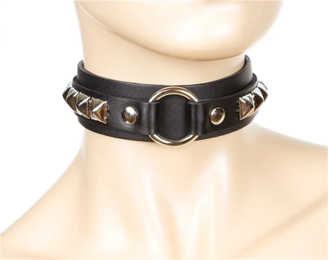 Middle Ring Studded 1 1/8″ Choker in silver or black studs