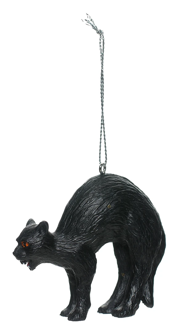 The Horrornaments sculpted black cat Halloween-themed tree ornament. Designed by the owner of the The Haunt, West Michigan’s premiere haunted attraction. Look out! Too late, this black cat has already crossed your path, bringing misfortune to all that come across him. The perfect accompaniment to a witch’s tree, this fierce feline