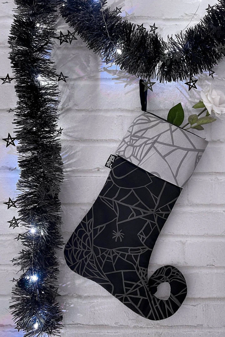 Take your Hexmas to the next level with our new ‘Hexmas’ stocking, large size with a black and white finish with a spiderweb design. Perfect for adding your special touches to the holidays.