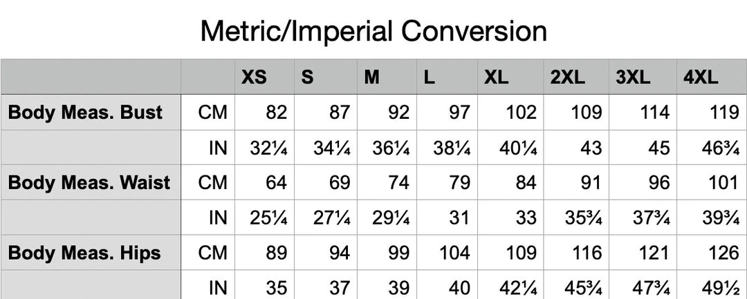 | Size | X-Small, Small, Medium, Large, X-Large, 2X-Large |
