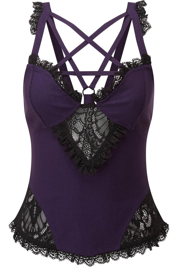 Killstar Women’s Stuff Lydia Harness Top [PLUM]