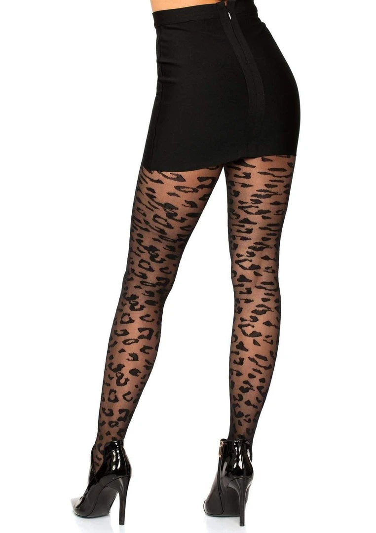 - FEATURES: Tone-on-tone tights with leopard spots are the perfect subtle but sexy addition to daytime looks.