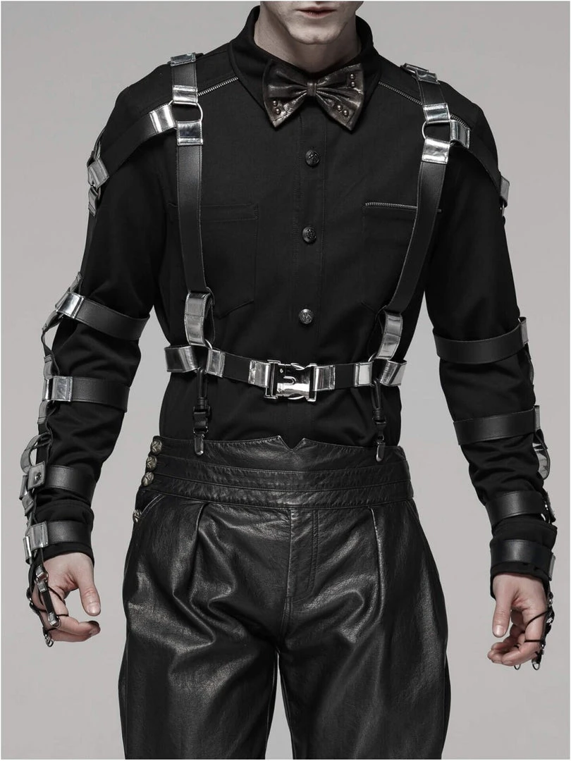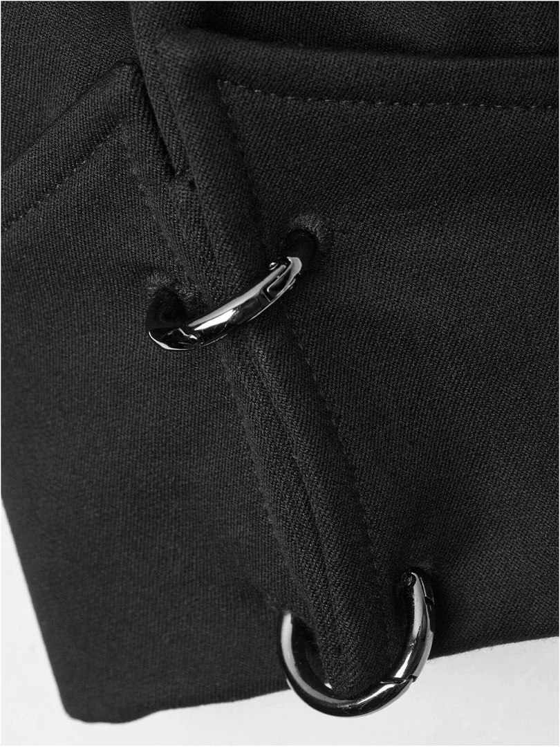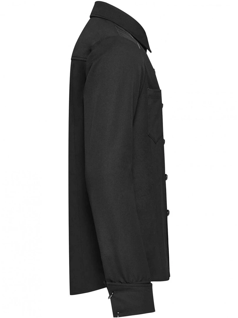 Woven fabric with small stretch. Front has intersected metal decoration. Special cuff ring design.