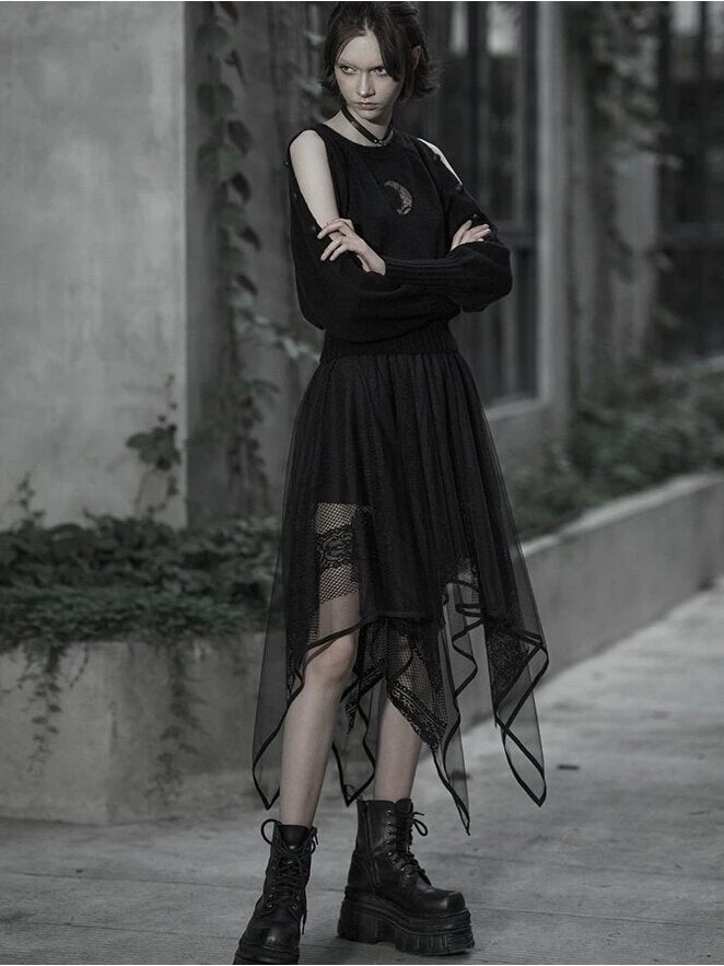 Skirt is made from combination mesh material and lace fabrics. Elastic waistband with Gothic embroidery for soft and comfortable feel.