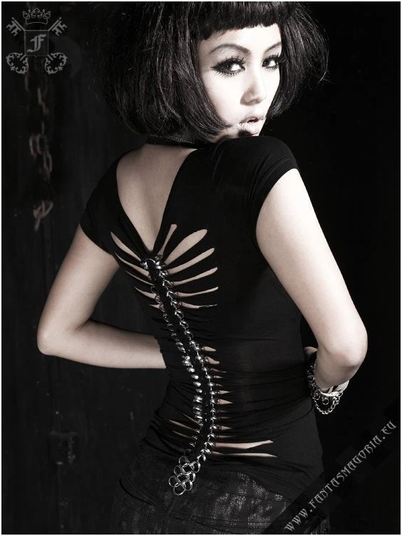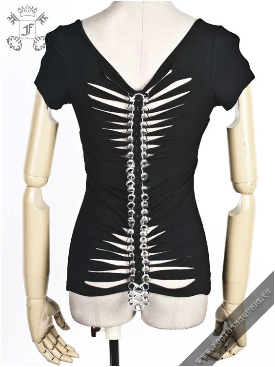 Exclusive back detail made of stylised steel ribs & torned fabric along the spine resembles the spine and ribs.
