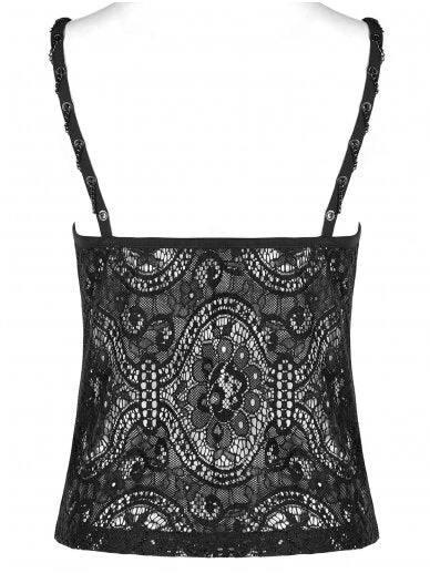 Black Opium top by Punk Rave. Short black lace top with straps and lacing on the front.