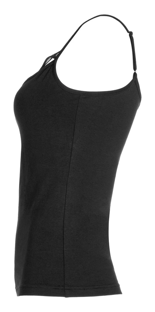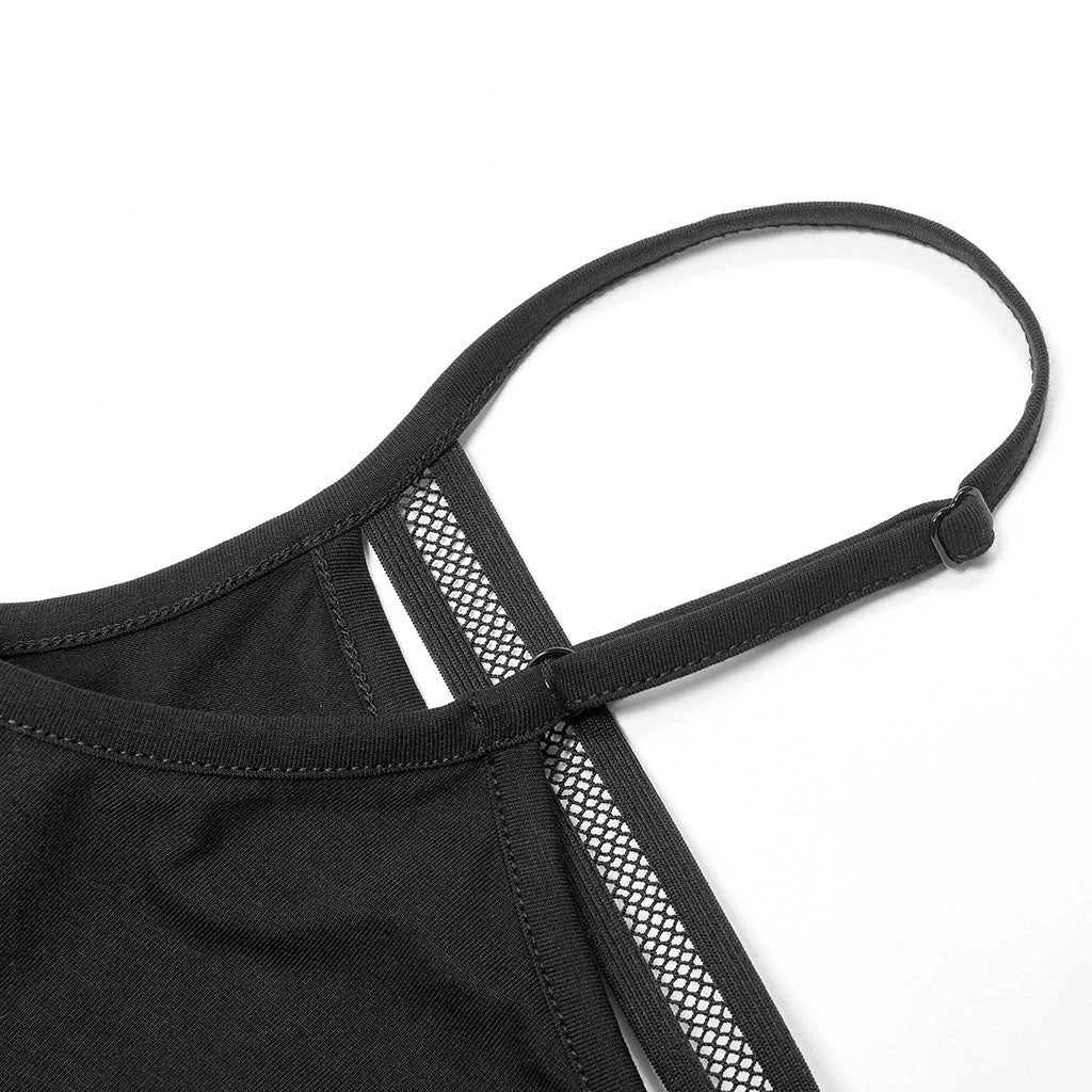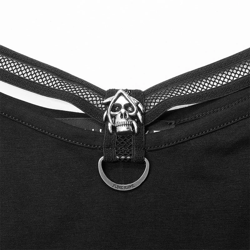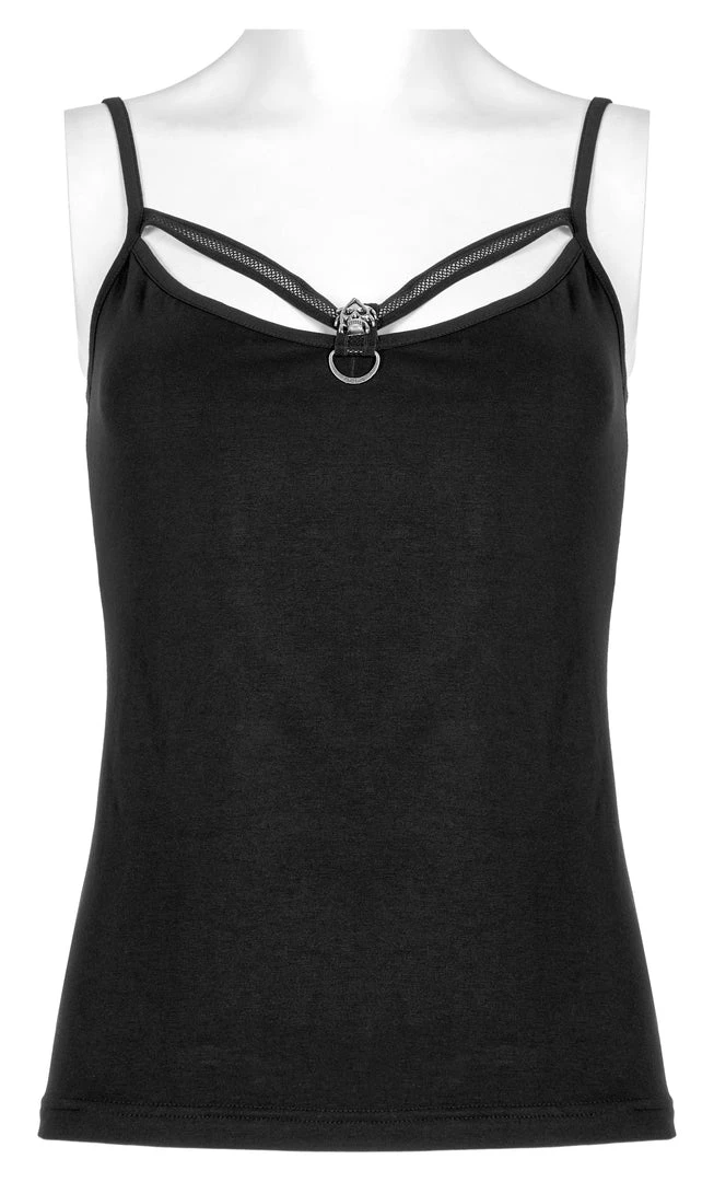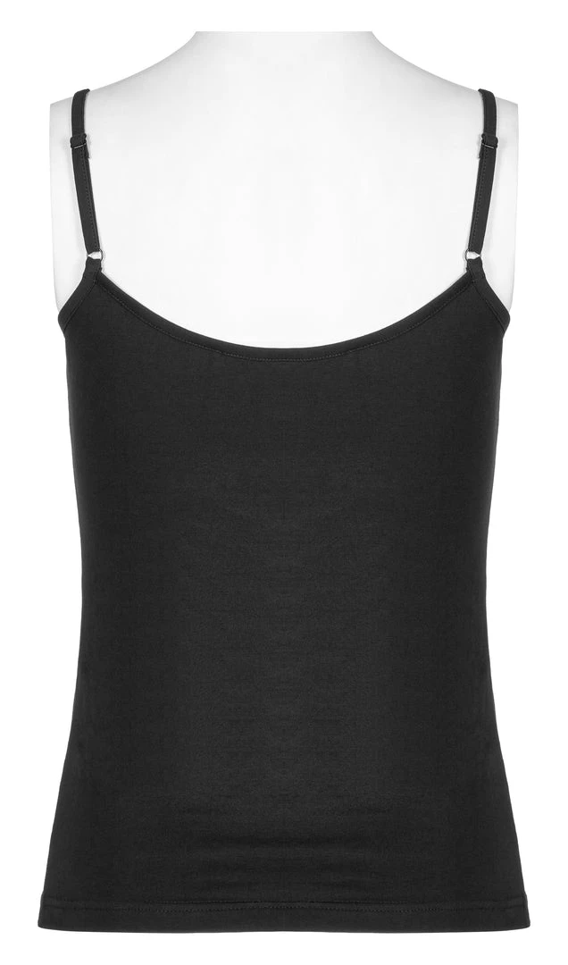 Black camisole tank top from Punk Rave. Soft elastic knitted fabric featuring a skull accent on the front, and adjustable shoulder straps.