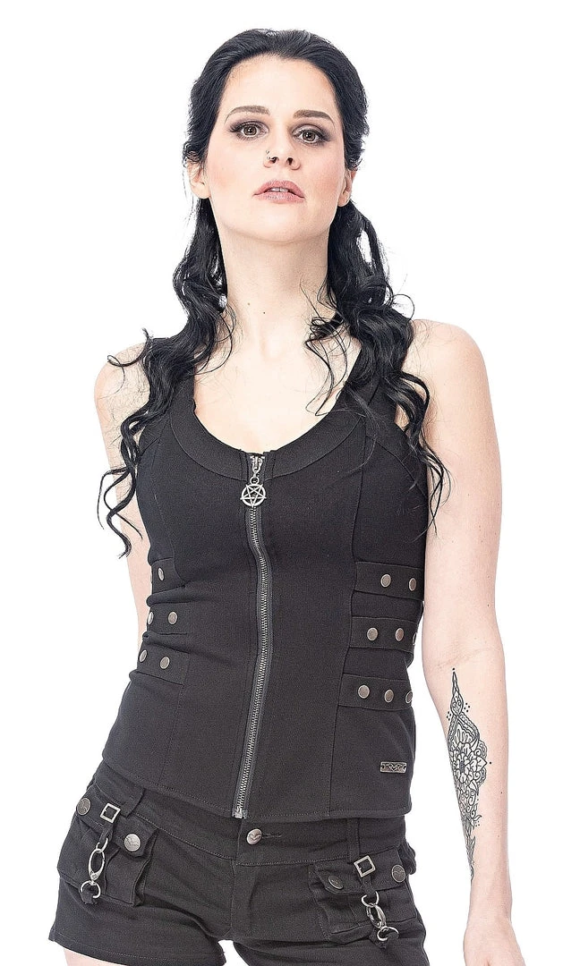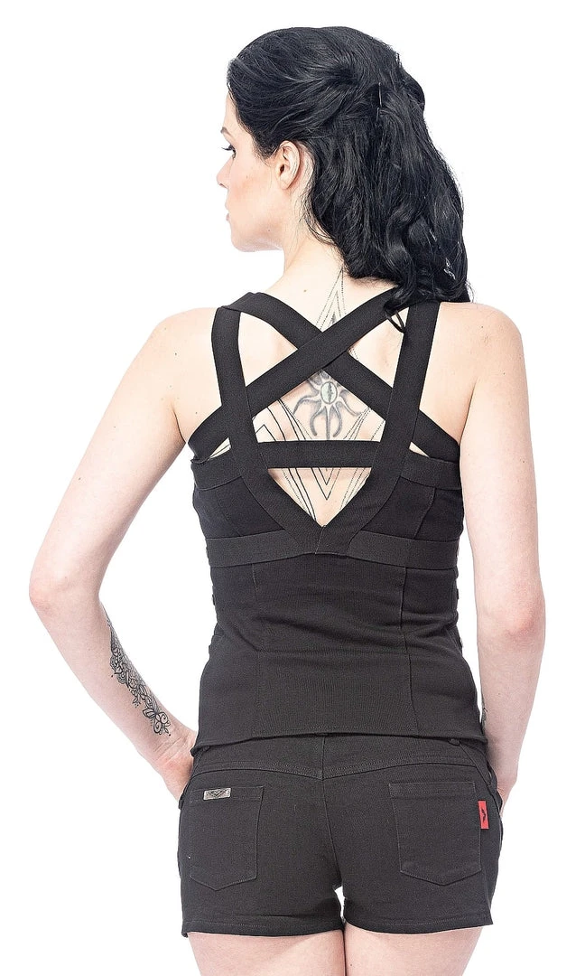 Figure-hugging Gothic Top with Decorative Straps