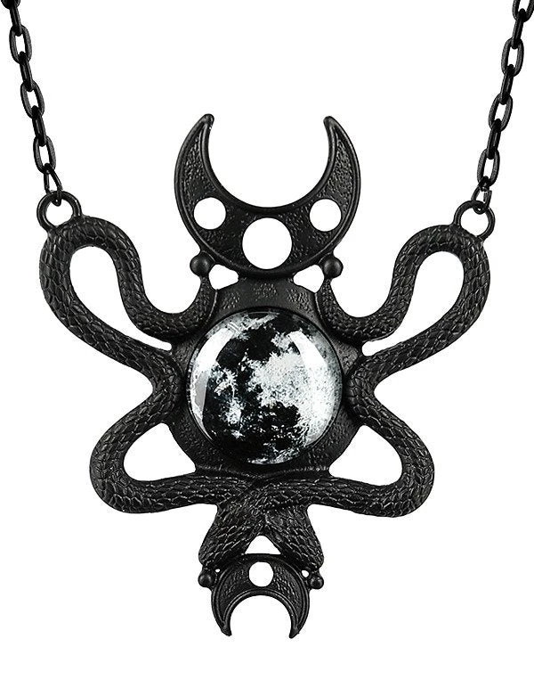 Black pendant snake embracing moon.
