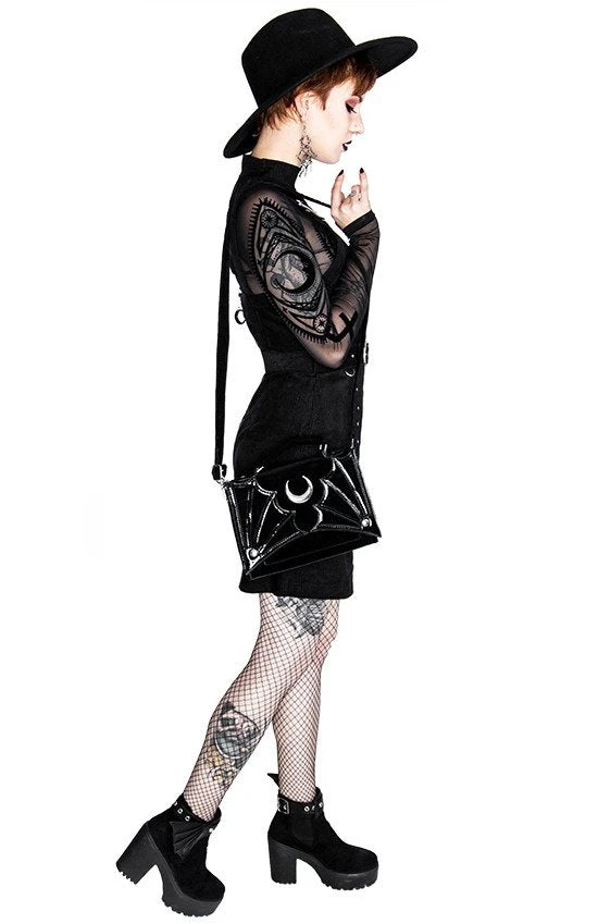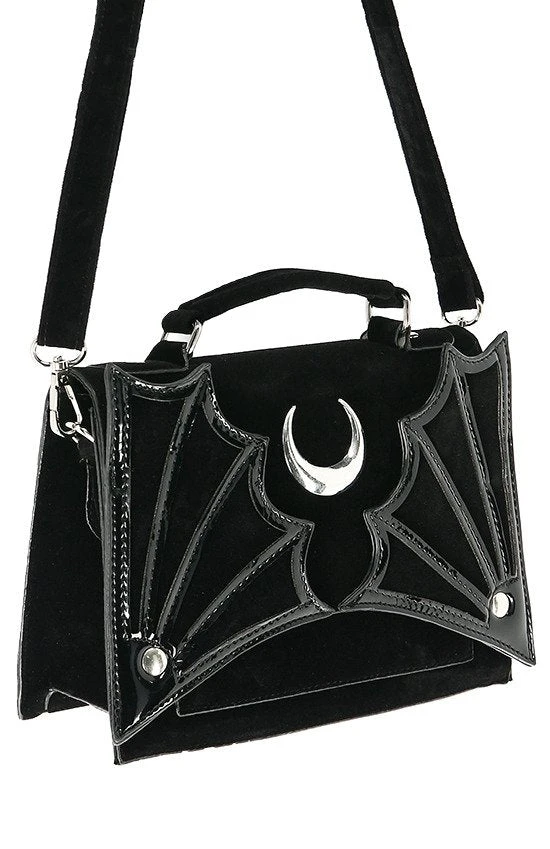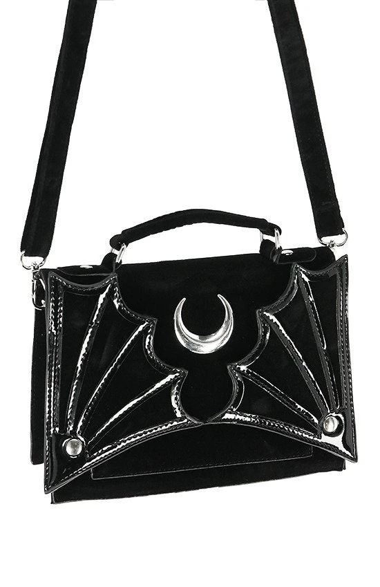 SMALL BAT BAG Gothic crossbody handbag with bat wings and moon