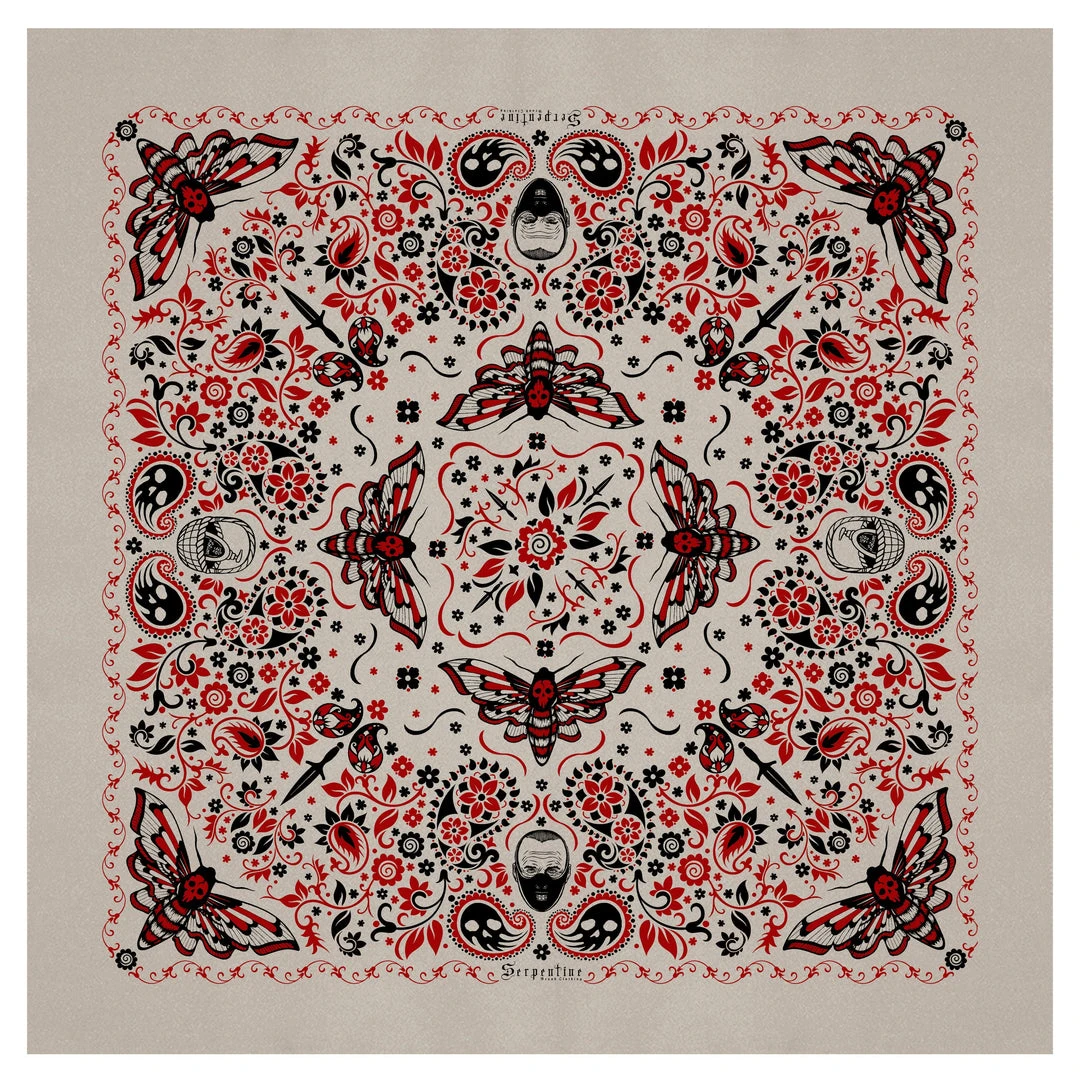 Buffalo Bill Bandana is Red and Black on a Beige bandana and puts the lotion in the basket. Designed diagonally so once it’s folded and tied it will display at it’s very best.