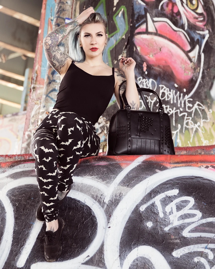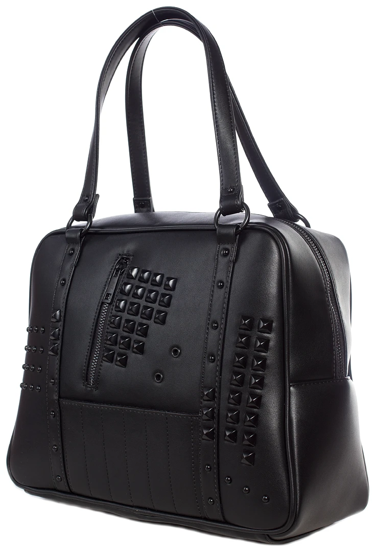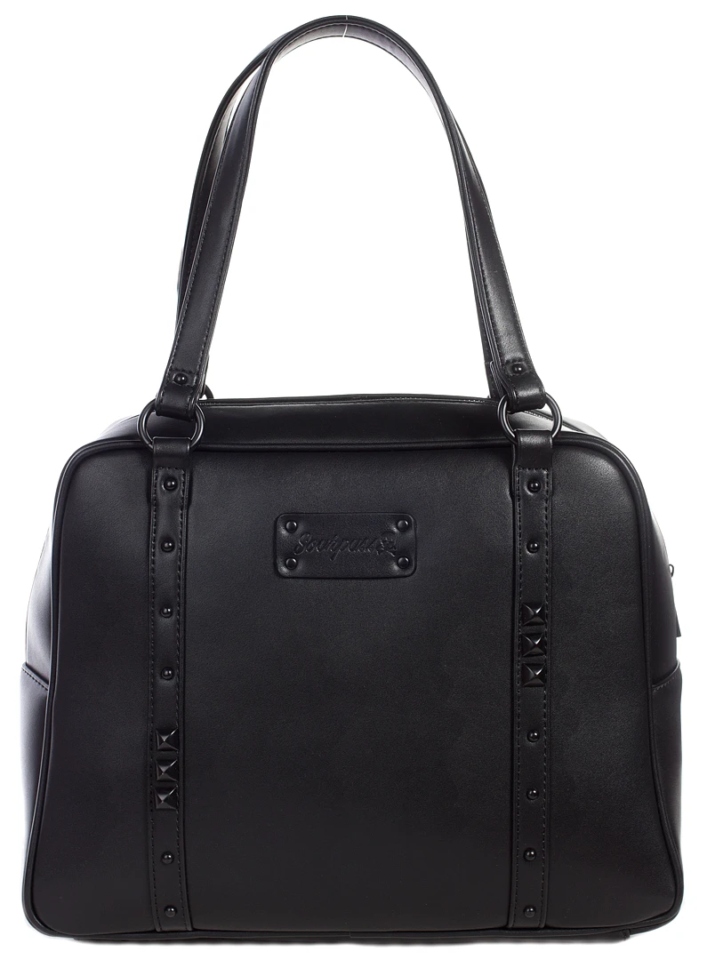 The Sourpuss Idoless Bowler Purse is anything but basic! We’ve taken one of our most popular purse designs and added it to our Idoless collection for a sleek & stylish addition to your wardrobe. This faux-leather bag features a zip closure, two top straps, interior zip pocket and ample space for anything you need – and more! Black stud detail on the front and back, as well as the small zippered pocket on the frontside, complete this classic look with a twist that’s perfect for any outing.