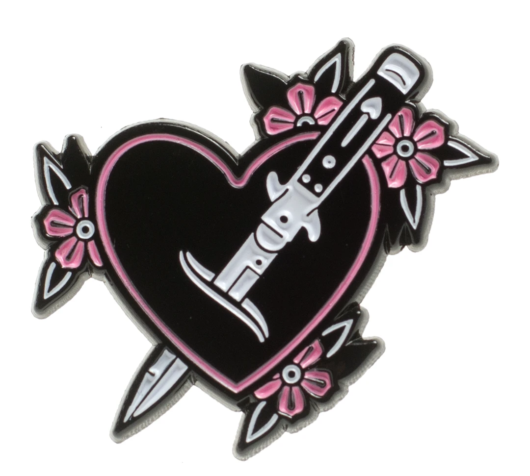 Are you feelin’ a little stabby? Then our brand new enamel pin is perfect for showing off how you really feel. But nicely, and with hearts! Makes a great addition to your favorite jacket, vest or bag.