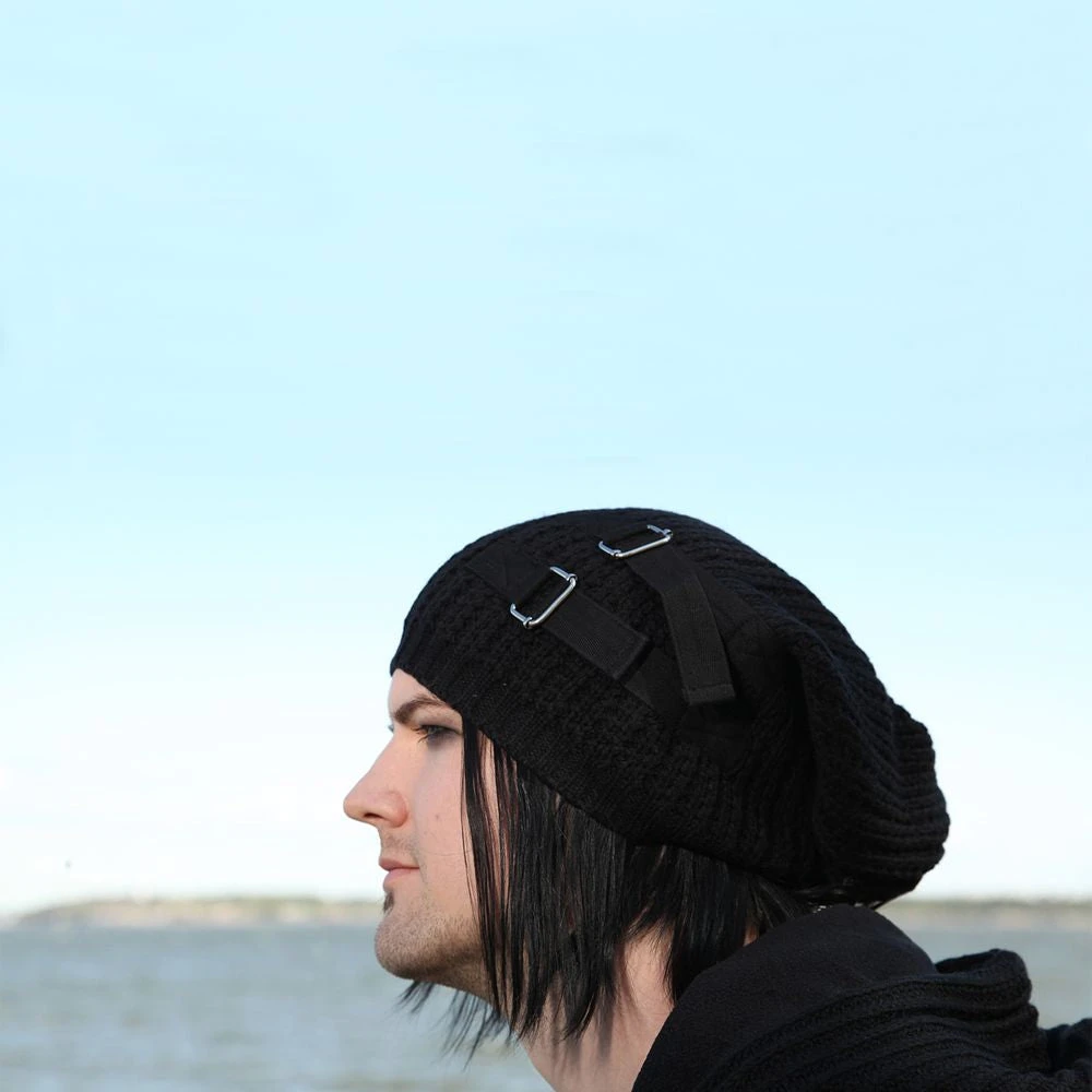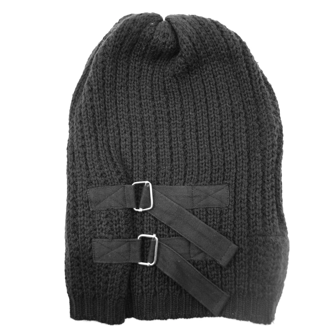 Harsh hat by vixxsin. Knitted hat with adjustable strap accents.